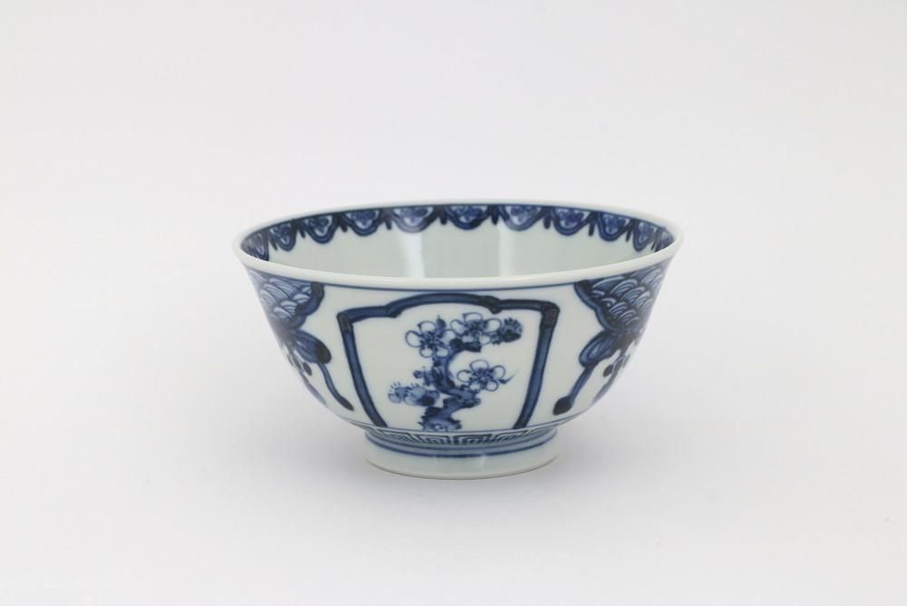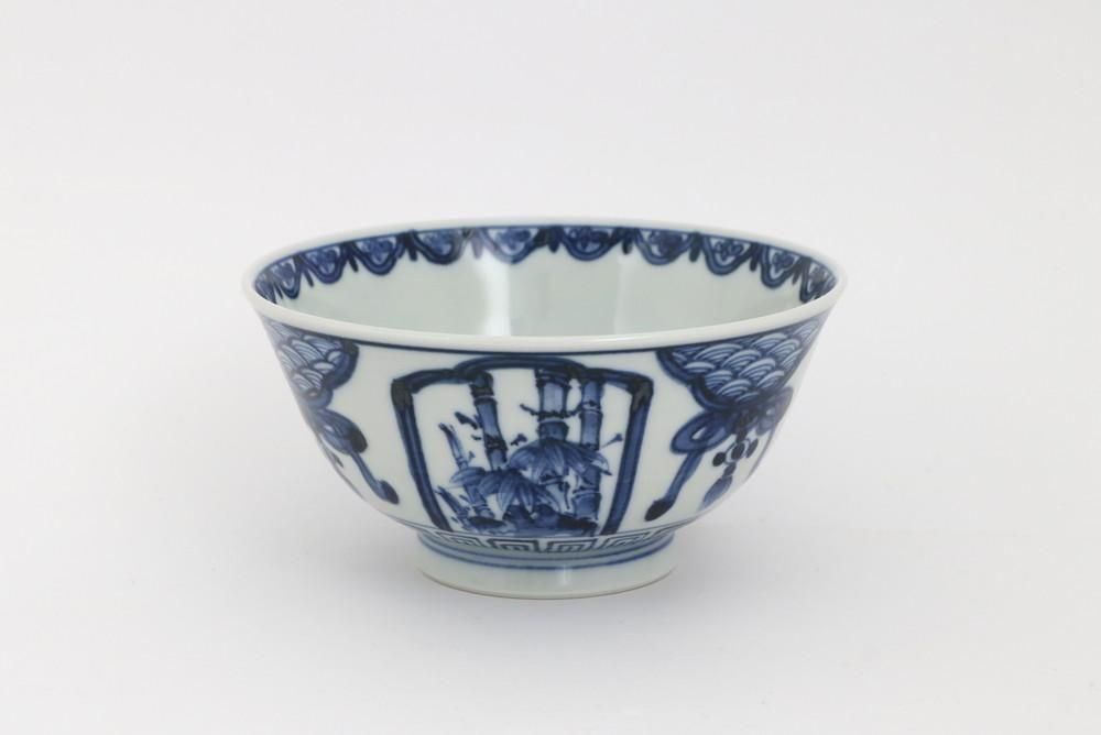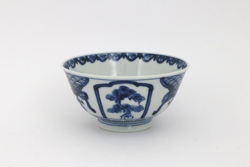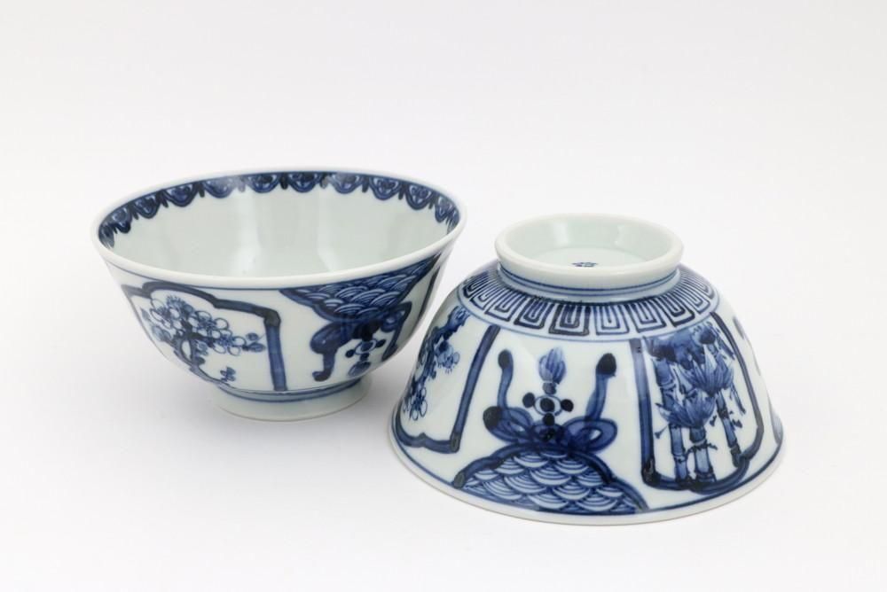 この作品は、染付の古いスタイルのひとつ「古染付」をイメージして作られています。