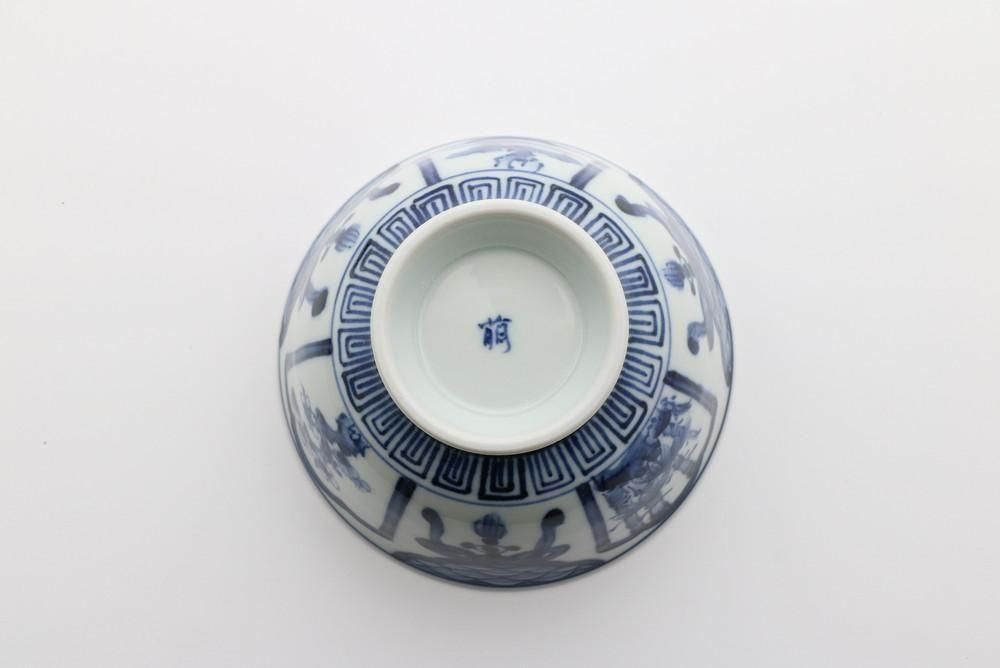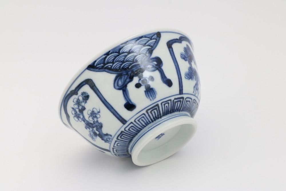 染付の絵の具も、それに引っ張られる影響で、一部、線が走ったようになっている個所もございます。